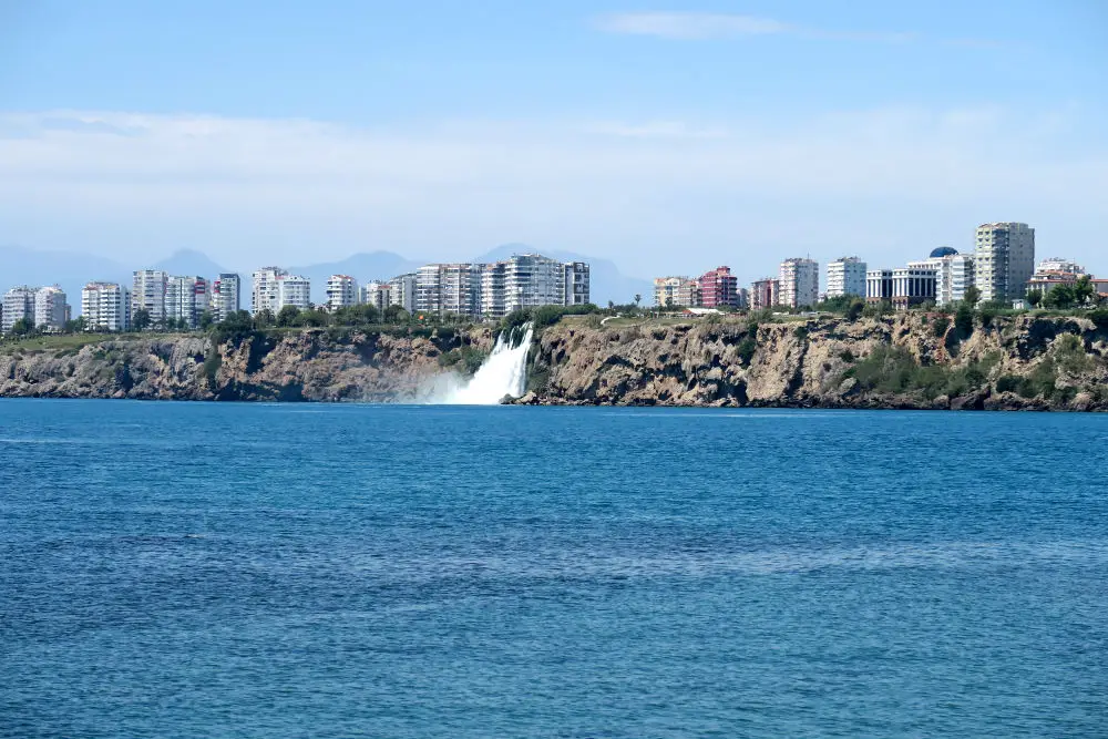 Der 30 Kilometer lange Düden-Fluss stürzt auf seinem Weg aus dem Taurusgebirge zweimal einen Wasserfall hinab.